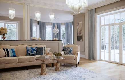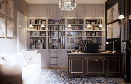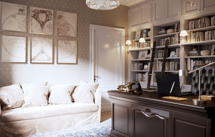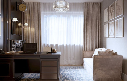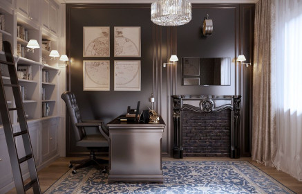 The leitmotif of this interior was the idea of a classic English house, where a young family can spend time comfortably and interestingly. A fabulous room for a little princess, a beautiful bedroom for parents, an office for the head of the family, a cinema hall and a billiard room for joint family evenings or meetings with friends. In this house, everything thought out and provided for, and the atmosphere to the smallest detail reflects the aristocracy of the English classics.